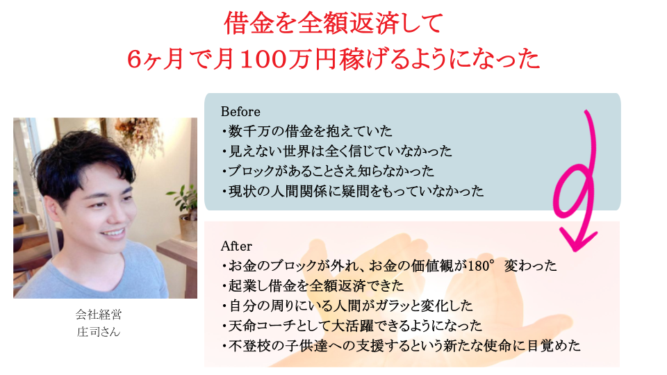 6ヶ月でお金の不安から解放されてお金が循環するようになりました!自分が本当にやりたかった仕事につけました。
